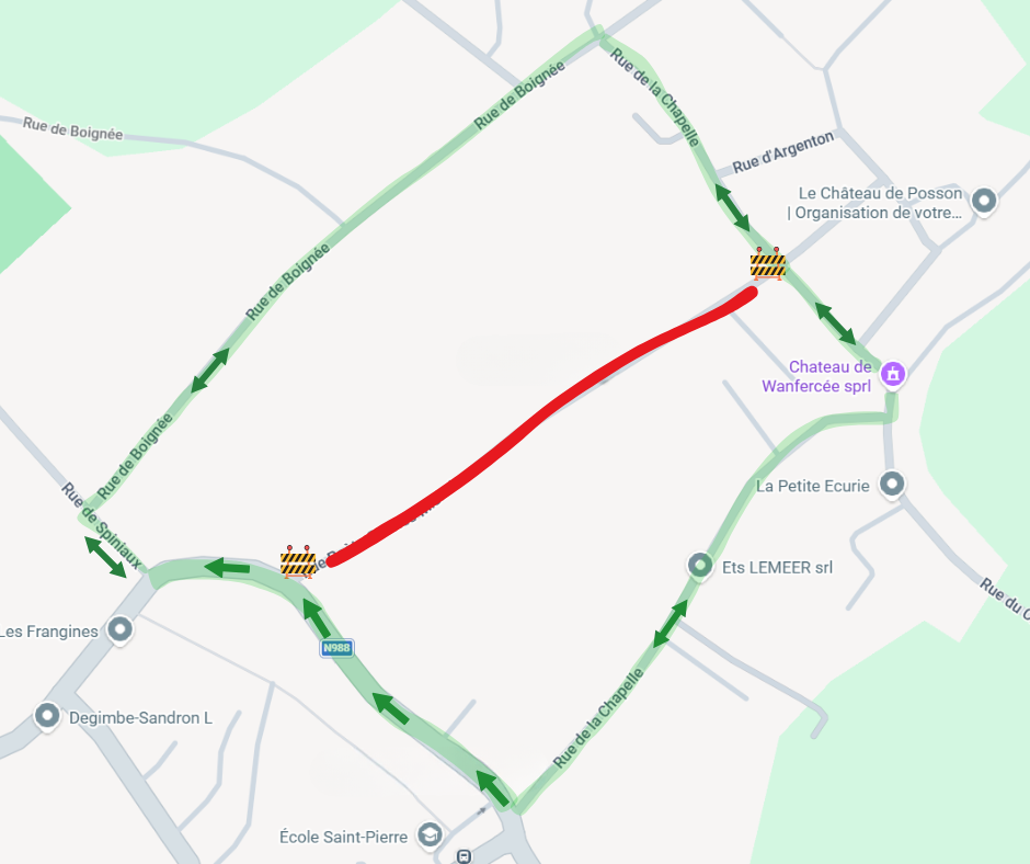 - Une déviation sera mise en place via les rues avoisinantes.