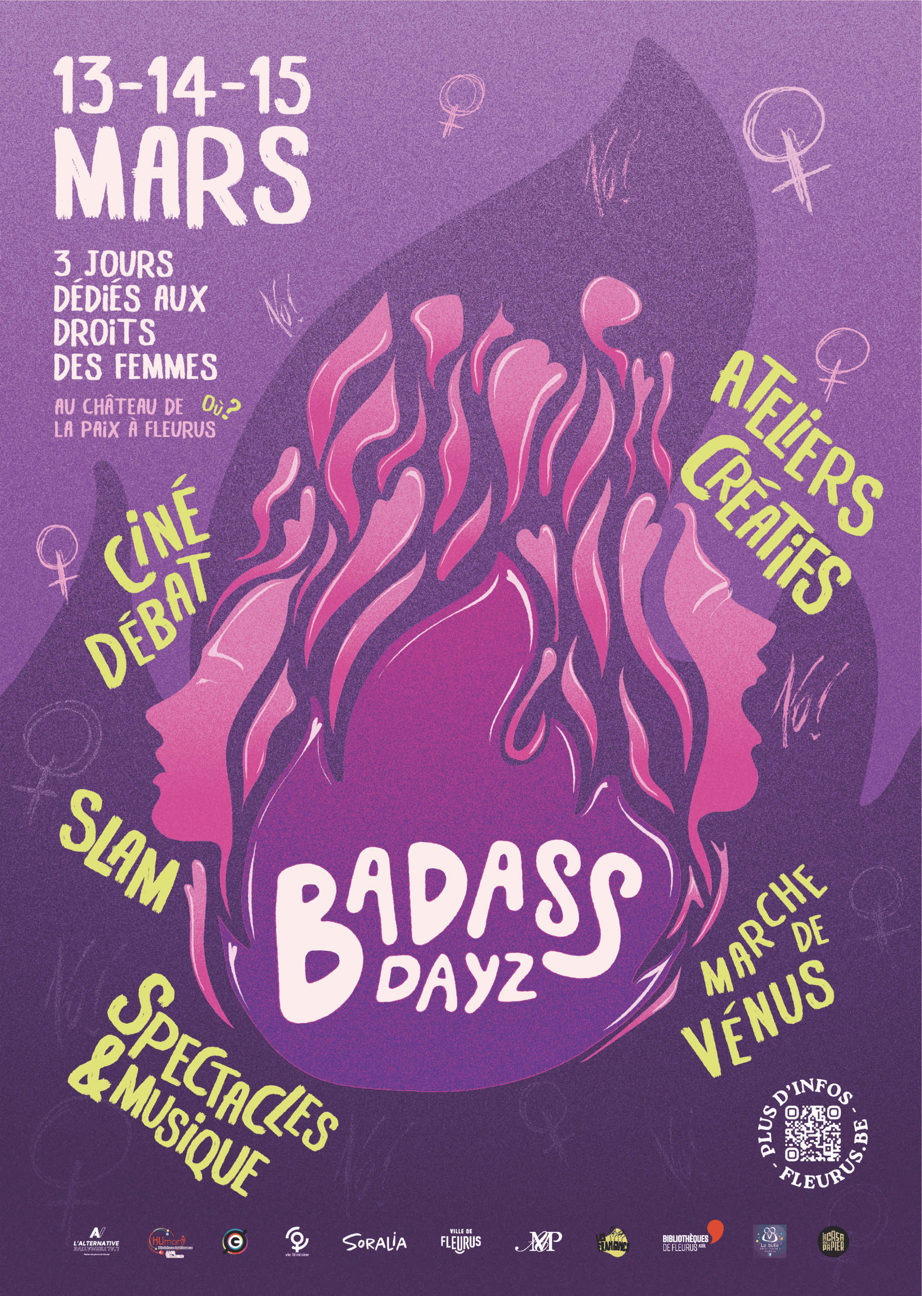 Cette année, les partenaires culturels et associatifs de la Ville de Fleurus mettent les femmes à l’honneur avec les Badass Dayz : trois jours pour s’inspirer, créer, échanger et célébrer les droits des femmes à travers des ateliers, débats, spectacles et animations. Rendez-vous du vendredi 13 au dimanche 15 mars 2026 pour vivre une semaine engagée et festive !