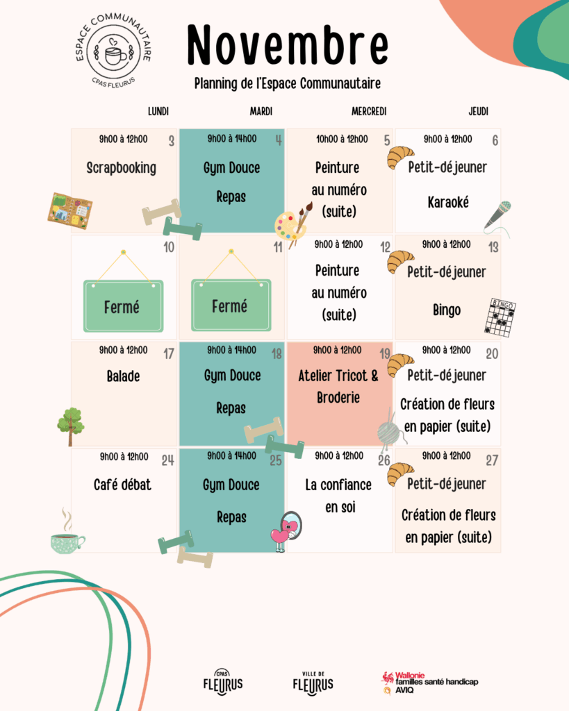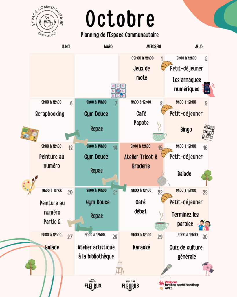 Les principales actions et services du CPAS de la Ville de Fleurus incluent :